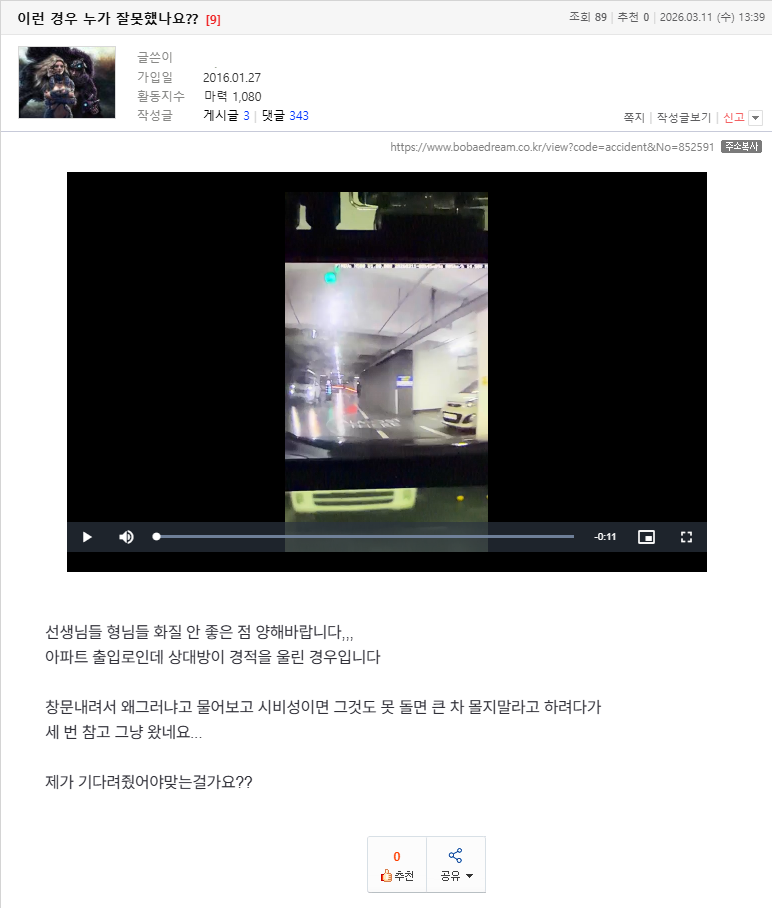 [펑복] 이런 경우 누가 잘못했나요?? (14) 이미지 26.03.11 16:08 추천 28 조회 1558 수정 26.03.11 16:08 애덤댕킹 작성글보기 신고 댓글 내용 확인 후 마력회복하세요. 추천 28 본 게시물을 뉴스 및 기타 매체에서 인용하실 때는 '보배드림' 출처 표기를 부탁드립니다 페북 트윗 밴드 카톡 카스 복사 스크랩 삭제 수정 신고 불법광고신고 목록