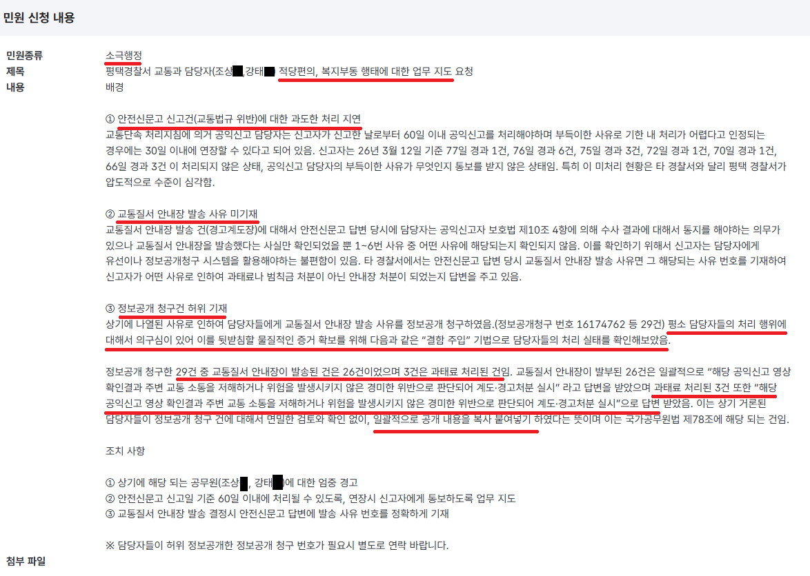 복사 붙여넣기의 대가인 평택경찰서 담당자들을 위해서 경고장 처리 사유를 정보공개하면서 과태료 처리된 건도 은근슬쩍 같이 정보공개 청구했더니 과태료 처리된 건도 “해당 공익신고 영상 확인결과 주변 교통 소통을 저해하거나 위험을 발생시키지 않은 경미한 위반으로 판단되어 계도·경고처분 실시”했답니다. ㅋㅋㅋ