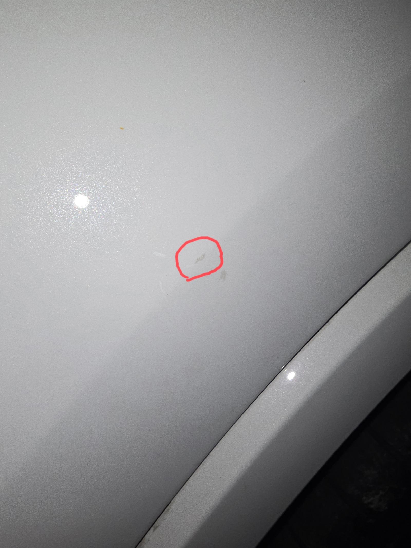 제가 손으로 만져보고 차주도 손으로 만져보고 패임 찌그러짐 없음을 인지하였고 컴파운드로 지우면 아예 사라질 수준인데