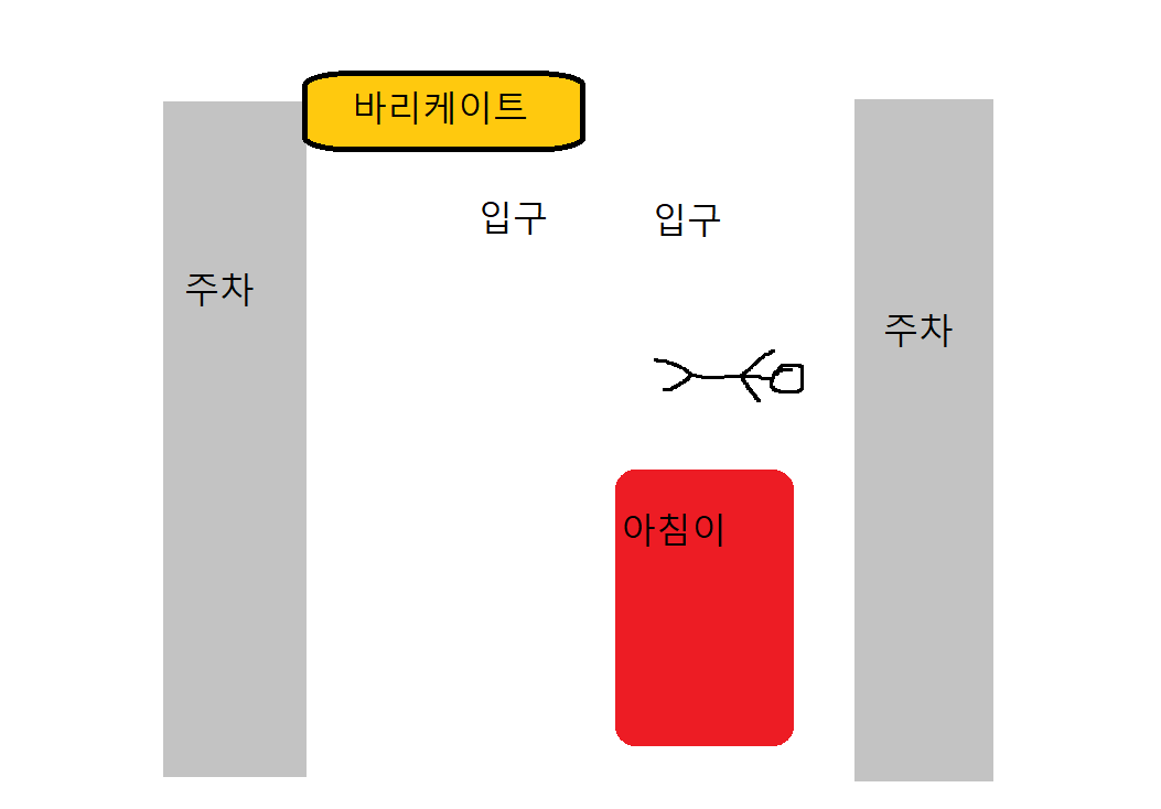 주차장 입구에 바리케이트 하나 세우고 차 한대 지나갈 공간으로 경찰차 두대 들어오고 밖에 한대 서있고.