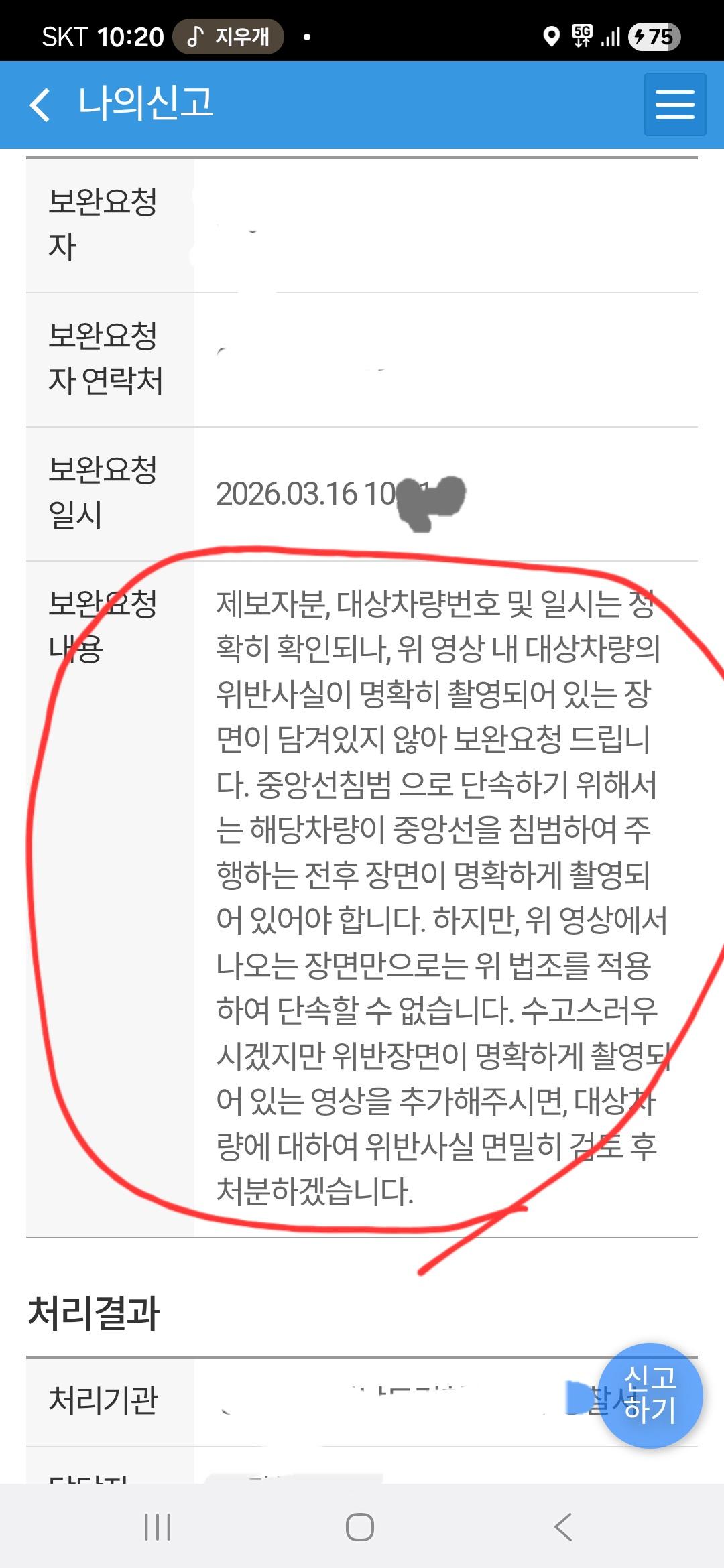 신고 답변좀 봐주세요. (4) 이미지 휴대전화 26.03.25 11:18 추천 1 조회 327 수정 26.03.25 11:27 주차똑바로해라새끼야 작성글보기 신고 댓글 처음에 영상 앞부분 보완요청 하라고 했는데 앞 부분 없어서 그냥 뒀습니다. 담당자 바뀌고 바로 수용뜨고 종결됐는데 최근 처리 결과가 맞는거겠죠? 추천 1 본 게시물을 뉴스 및 기타 매체에서 인용하실 때는 '보배드림' 출처 표기를 부탁드립니다 페북 트윗 밴드 카톡 카스 복사 스크랩 삭제 수정 신고 불법광고신고 목록