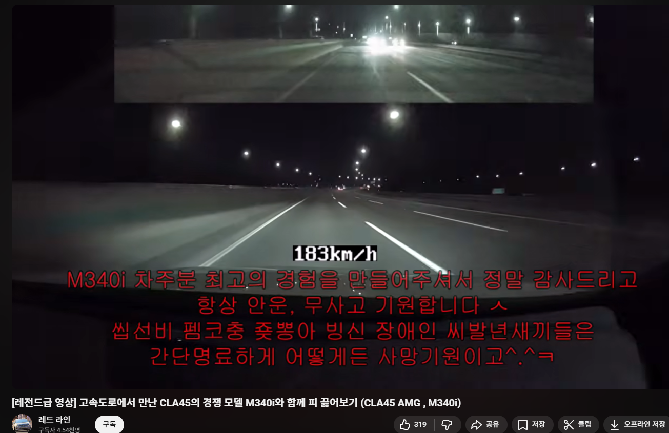 못잡은 경찰도 안타깝고 이런것을 차쟁이랍시고 서로 멋있다고 빨아주는것도 진짜 정상아닌거같네요
