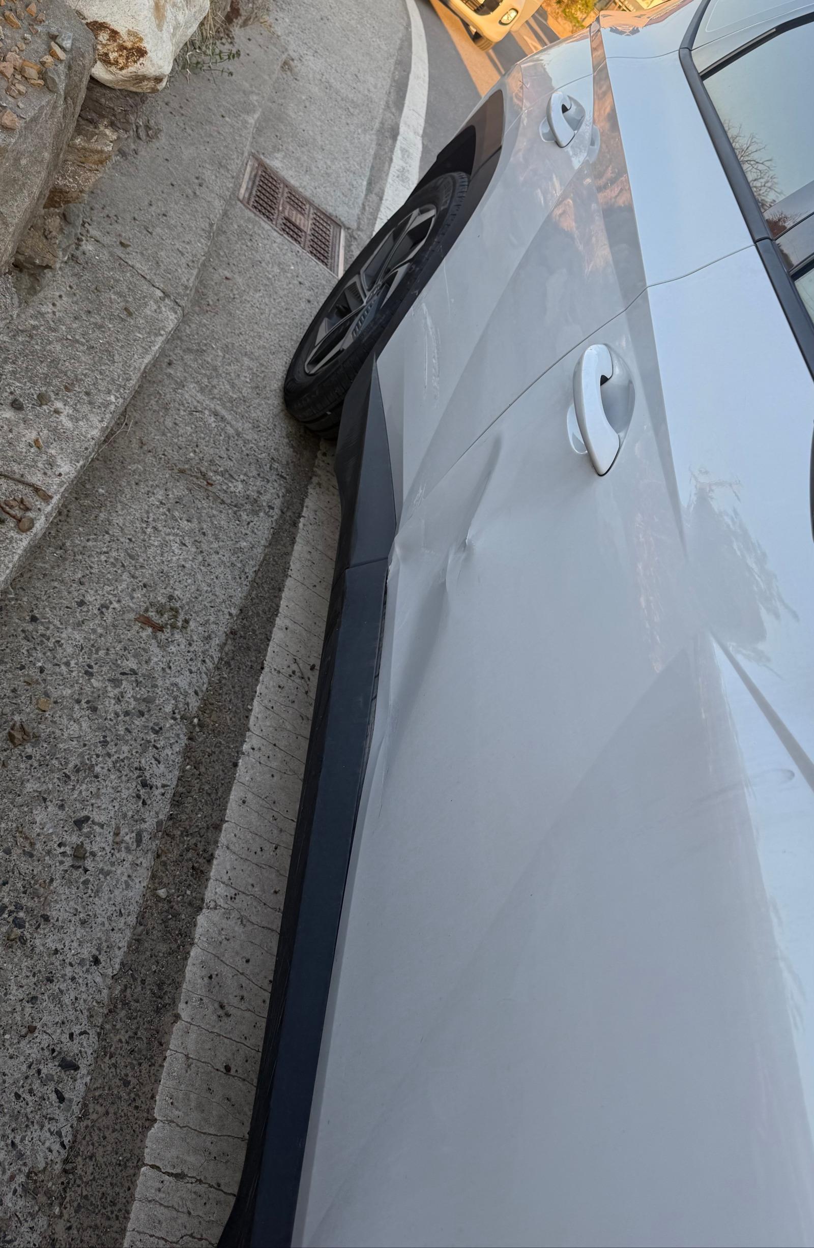 1번 사진의 투싼이 사고 당한 제 차입니다. 조수석과 그 뒷좌석 문에 박혔고요. 2번은 상대방 차의 블박 사진입니다