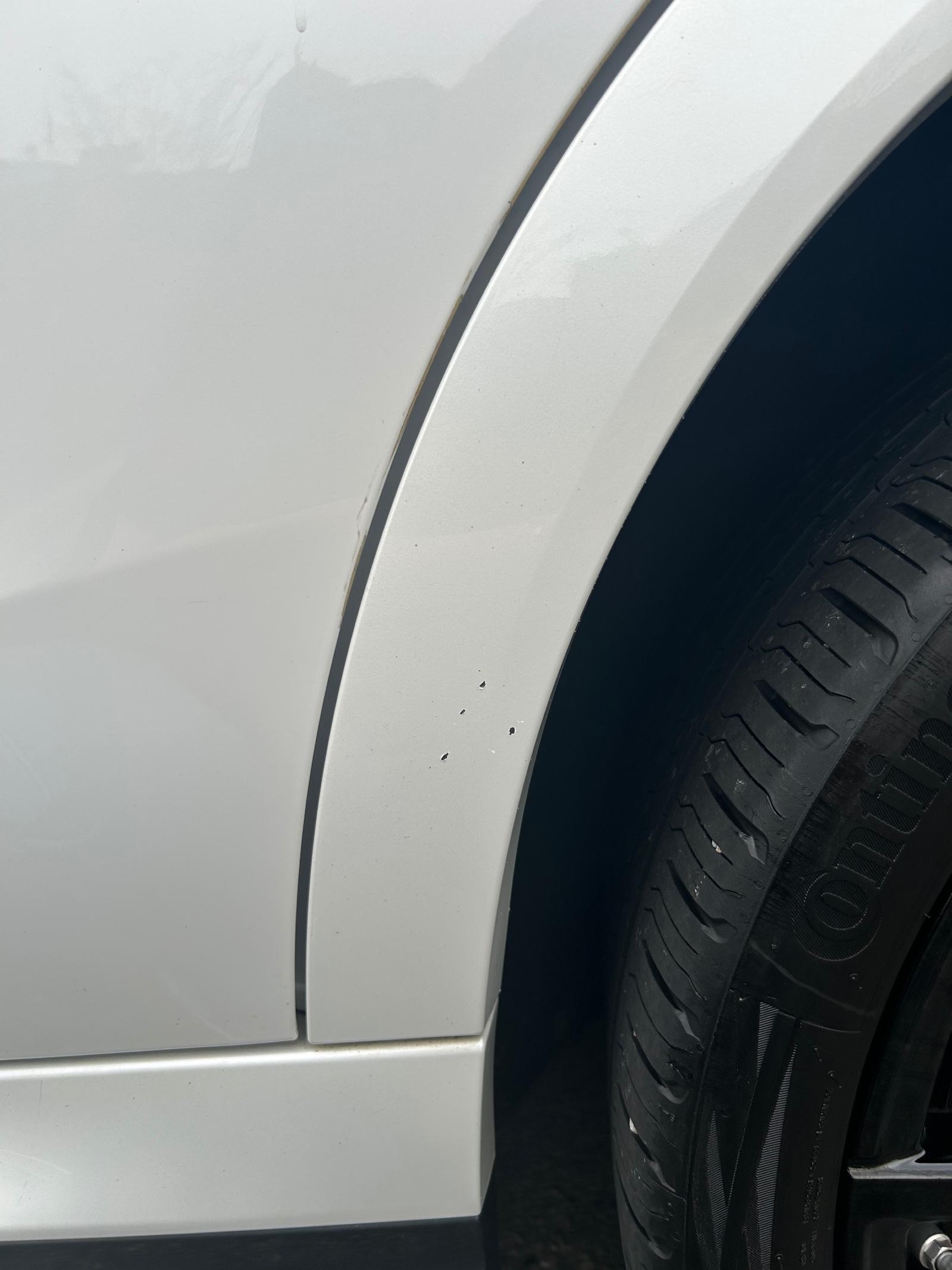 그렇다면 맞은 부위는 조수석 쪽 리어 휀더여야 하는데, 사진을 보면 명백히 운전석 쪽 리어 휀더입니다.