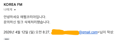 해당 게시물에 대해서는 사이트 측에 삭제 요청을 전달했고