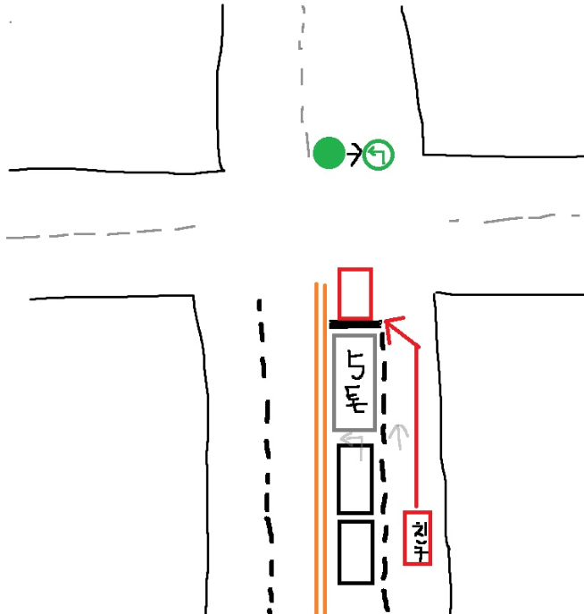 좌회전 차선 맨앞으로 끼어 든 후 10~20초간 정차해 있었는데