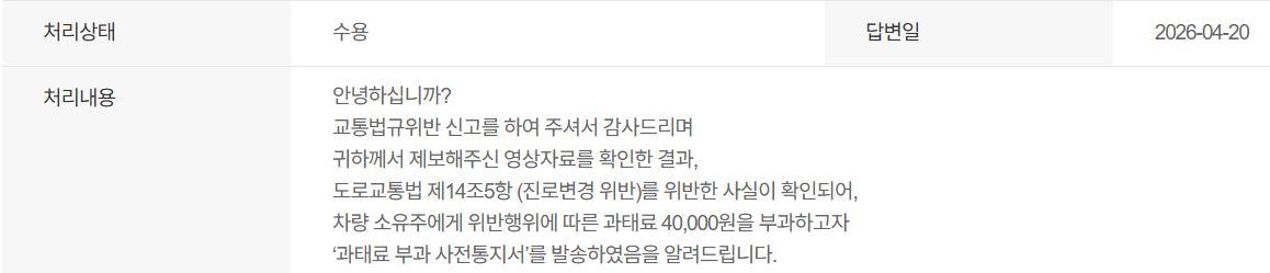 동부간선도로 진로변경 위반 4장 당첨 (3) 이미지 26.04.20 22:21 추천 3 조회 239 boerizet50 작성글보기 신고 댓글 축하합니다. 추천 3 본 게시물을 뉴스 및 기타 매체에서 인용하실 때는 '보배드림' 출처 표기를 부탁드립니다 페북 트윗 밴드 카톡 카스 복사 스크랩 삭제 수정 신고 불법광고신고 목록