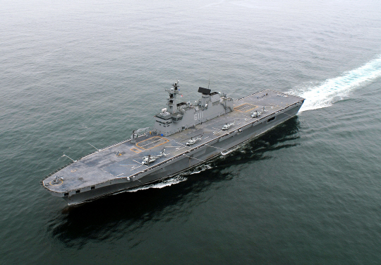 | HJ중공업이 자체 설계, 건조한 독도함. 이 업체는 지난해 말 방위사업청으로부터 423억 원 규모의 해군 독도함 창정비 사업과 254억 원 규모의 고속상륙정 창정비 사업을 수주했다. HJ중공업 제공 |