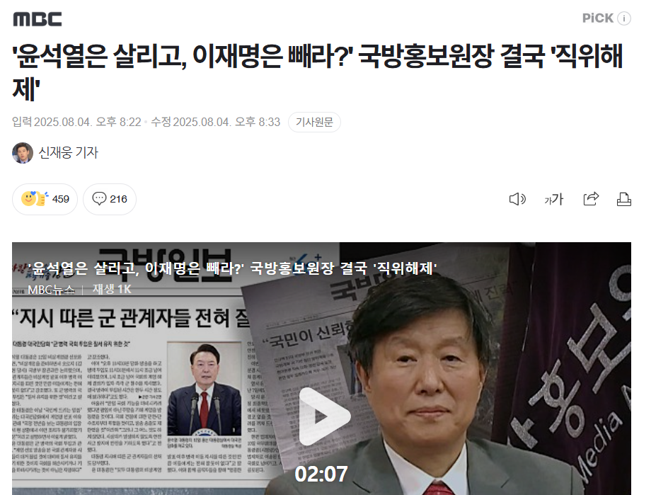 [뉴스] 국방부, 국방홍보원장 직위해제 및 경찰에 수사 의뢰 (1) 이미지 25.08.05 06:37 추천 18 조회 1318 납세의무 작성글보기 신고 댓글 내란수괴 윤석열의 애완견들의 말로는 결국 사필귀정이군요 심지어 정권이 바뀐뒤에도 끝까지 조작과 선동을 일삼던 범죄자들은 수사받고 합당한 처분만이 있을뿐입니다 추천 18 본 게시물을 뉴스 및 기타 매체에서 인용하실 때는 '보배드림' 출처 표기를 부탁드립니다 페북 트윗 밴드 카톡 카스 복사 스크랩 삭제 수정 신고 불법광고신고 목록