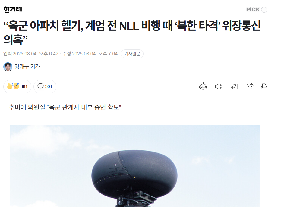 육군 내부고발이 있었고 현재 합참과 확인중이라고 합니다