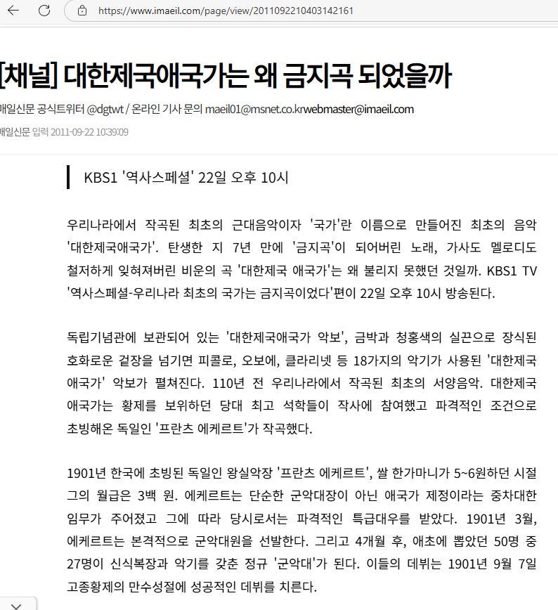 애국가는 금지곡이었다 (1) 이미지 25.08.12 16:36 추천 8 조회 1604 NoBady 작성글보기 신고 댓글 +_+ 추천 8 본 게시물을 뉴스 및 기타 매체에서 인용하실 때는 '보배드림' 출처 표기를 부탁드립니다 페북 트윗 밴드 카톡 카스 복사 스크랩 삭제 수정 신고 불법광고신고 목록