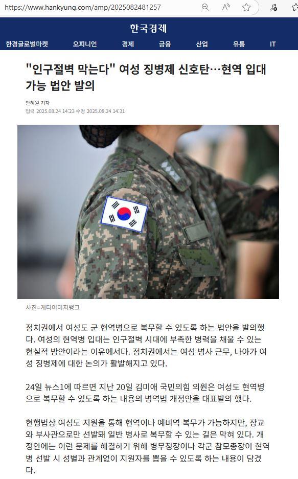 우리도 조금씩 여성징병을 할 수 있는 사회적 합의와 헌법 수정 등 입법이 이루어 져야 할텐데 그놈의 표심...