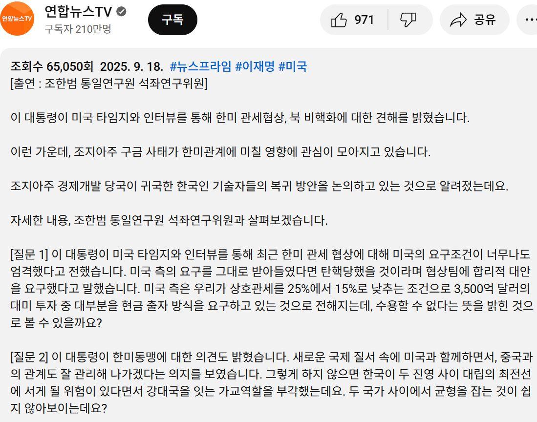 이 대통령, 미 타임지 인터뷰/“구금 사태로 한미관계 우려 제기” 이미지 25.09.19 04:51 추천 3 조회 1540 NoBady 작성글보기 신고 댓글 이 대통령, 미 타임지 인터뷰…“구금 사태로 한미관계 우려 제기” +_+ 추천 3 본 게시물을 뉴스 및 기타 매체에서 인용하실 때는 '보배드림' 출처 표기를 부탁드립니다 페북 트윗 밴드 카톡 카스 복사 스크랩 삭제 수정 신고 불법광고신고 목록