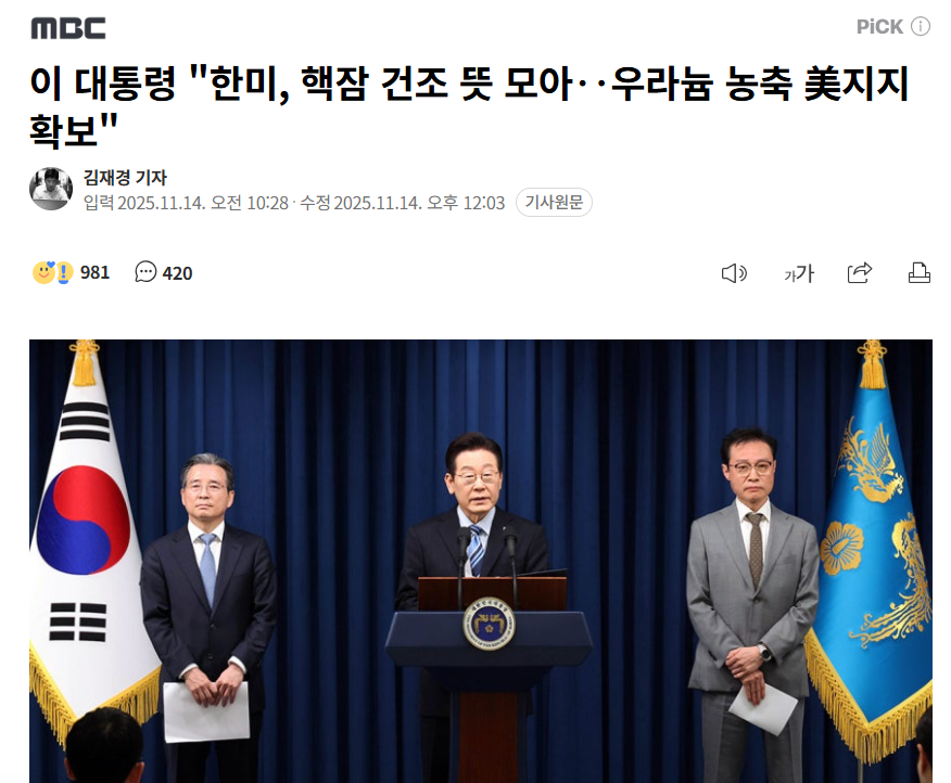 핵추진잠수함 건조와 핵연료 재처리 권한에 대해 트럼프 정부의 지지를 얻었다고