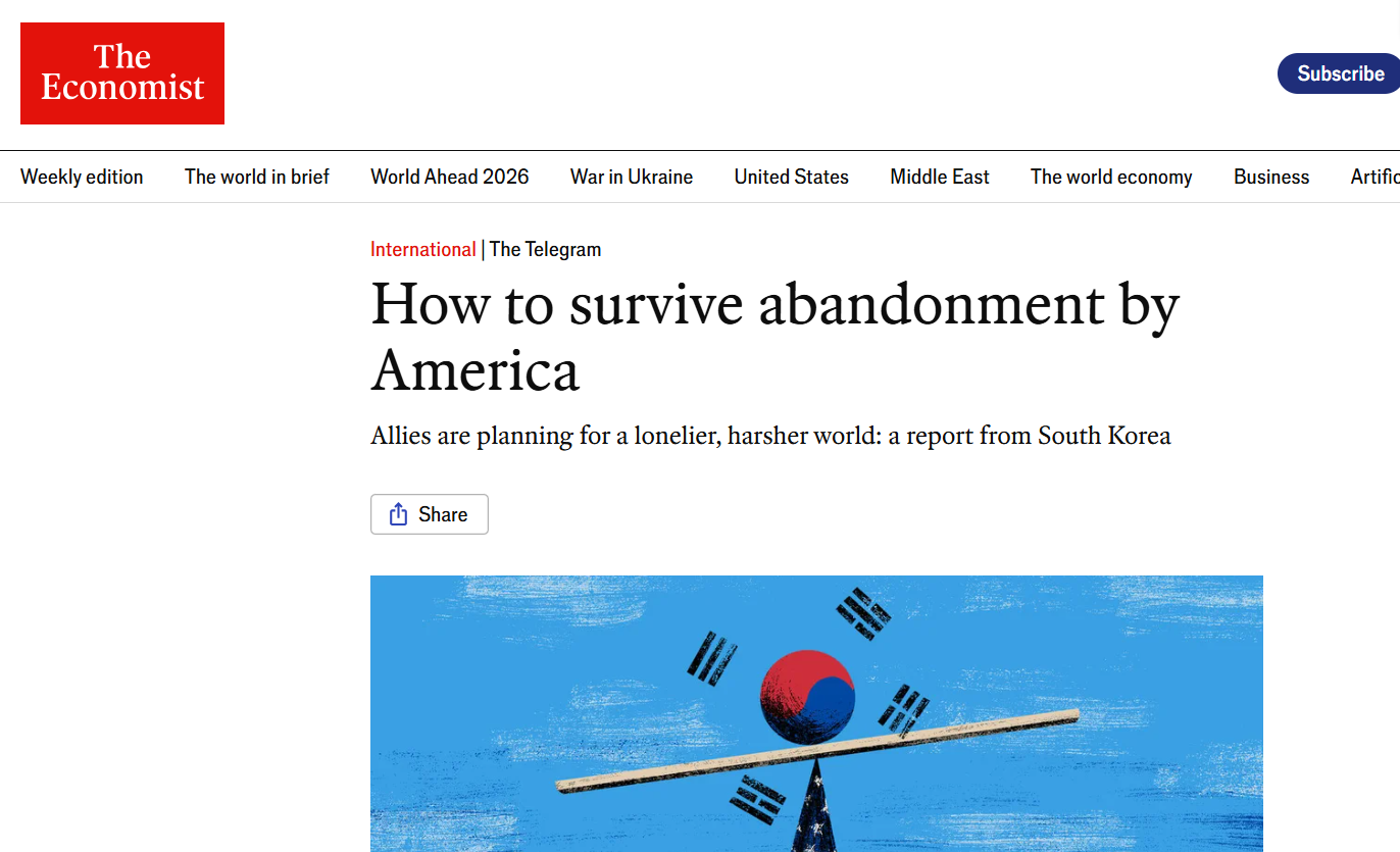 "중국과의 마찰에서 한국이 최전선에서 대만, 일본보다 먼저 피를 흘리길 바란다"고