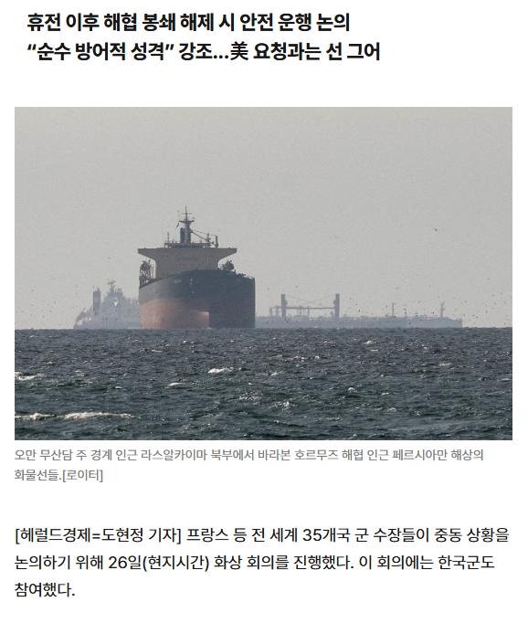 호르무즈 해협 파병 관련 해서, 이런 국제적 협력에 의해 여러국가들이 동참 할때,