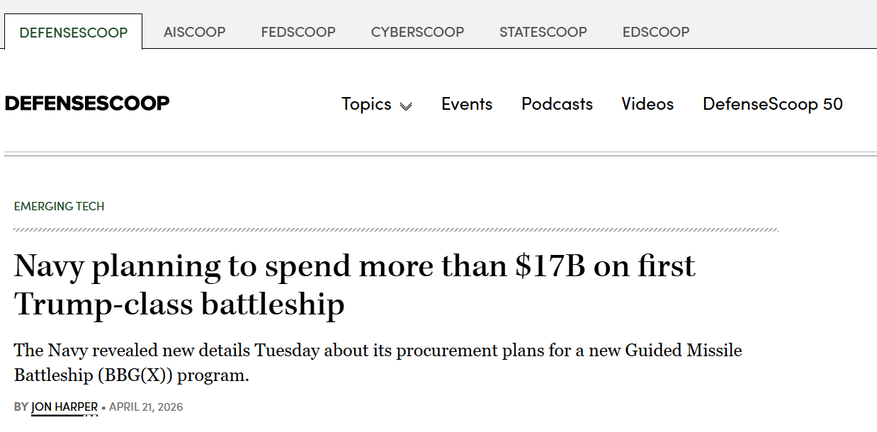 트럼프 클래스 배틀쉽의 초도함 건조비용 약 165억불 (한화 25조원 이상)의 예산을 배정했습니다