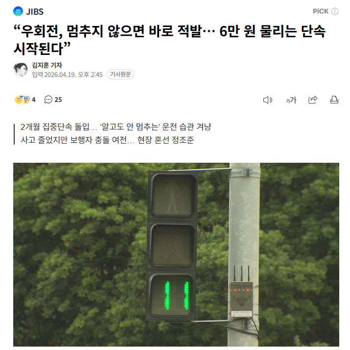 우회전시 일시멈춤 (6) 이미지 26.04.20 08:13 추천 11 조회 2152 지금로또1등가자 작성글보기 신고 댓글 이렇게 하지말고 그냥 우회전 신호 만들어 놓으면 안될까?헷갈리게 하지말고 추천 11 본 게시물을 뉴스 및 기타 매체에서 인용하실 때는 '보배드림' 출처 표기를 부탁드립니다 페북 트윗 밴드 카톡 카스 복사 스크랩 삭제 수정 신고 불법광고신고 목록