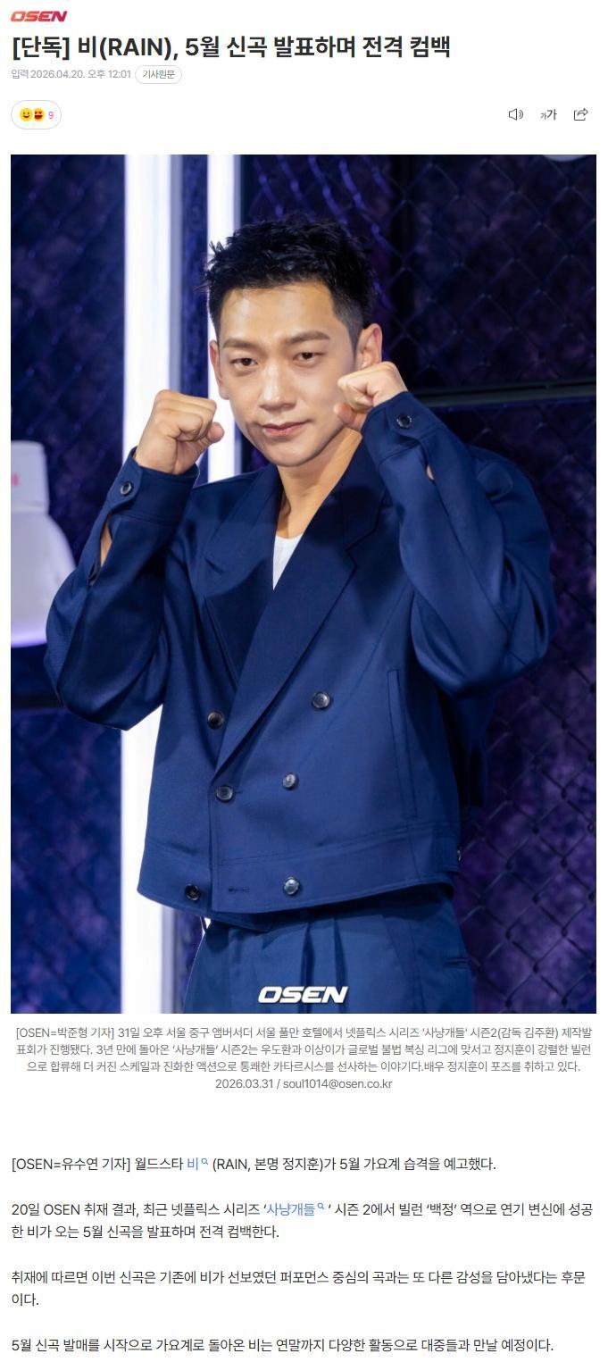 넷플 '사냥개들2' 하드캐리한 비(정지훈) 근황 (8) 이미지 26.04.20 15:29 추천 3 조회 2740 수정 26.04.20 18:25 유머복지론 작성글보기 신고 댓글 5월 신곡으로 컴백 추천 3 본 게시물을 뉴스 및 기타 매체에서 인용하실 때는 '보배드림' 출처 표기를 부탁드립니다 페북 트윗 밴드 카톡 카스 복사 스크랩 삭제 수정 신고 불법광고신고 목록