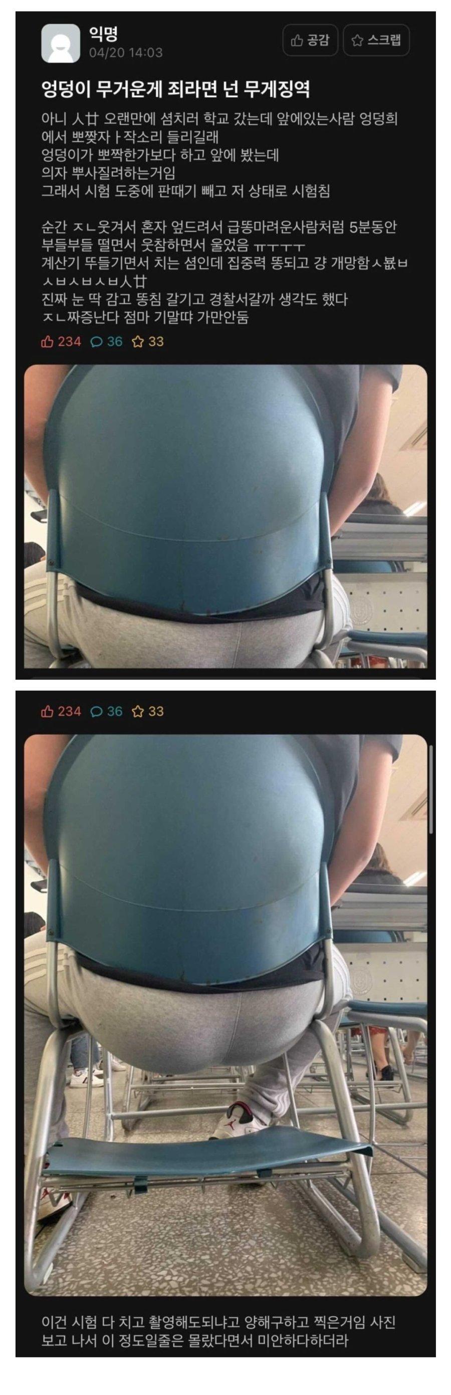 앞사람 엉덩이 때문에 시험 망함 ㅠㅠ (3) 이미지 26.04.20 21:03 추천 31 조회 5934 일차로는추월차로임 작성글보기 신고 댓글 와.... 이건 인정 ㅋㅋㅋㅋㅋㅋㅋㅋㅋㅋㅋㅋㅋㅋ시험 치고 있는데 앞에 이런 광경이 펼쳐지면..... 추천 31 본 게시물을 뉴스 및 기타 매체에서 인용하실 때는 '보배드림' 출처 표기를 부탁드립니다 페북 트윗 밴드 카톡 카스 복사 스크랩 삭제 수정 신고 불법광고신고 목록