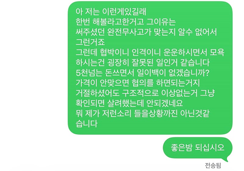 가격 절충하려고 문자보냈더니(지금 가격을 더올렸네요)