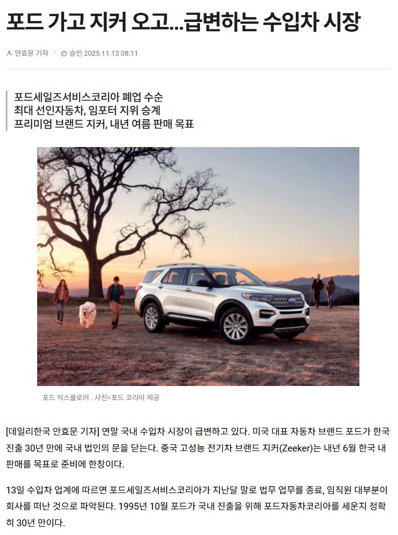 포드 가고 지커 오고…급변하는 수입차 시장 (2) 이미지 25.11.18 14:41 추천 17 조회 3946 일차로는추월차로임 작성글보기 신고 댓글 기사 출처 https://daily.hankooki.com/news/articleView.html?idxno=1295489 추천 17 본 게시물을 뉴스 및 기타 매체에서 인용하실 때는 '보배드림' 출처 표기를 부탁드립니다 페북 트윗 밴드 카톡 카스 복사 스크랩 삭제 수정 신고 불법광고신고 목록