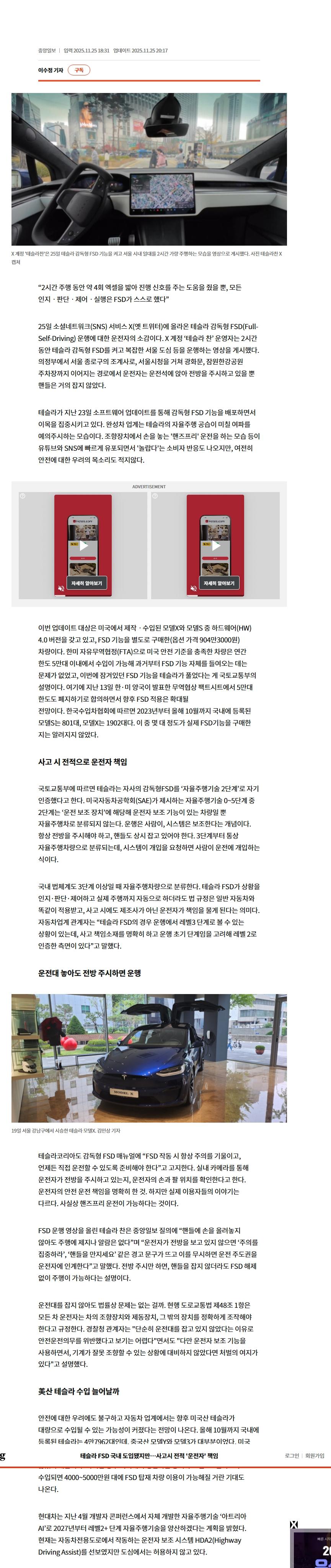 운전자 책임 뿐 아니라.. 처벌도 달리 해야함...과하게 말해서 이제 교통 사고라 볼 수 없는 영역으로 가는거임'...자율 주해을 운전자 책임이라 해도 인간은 습관으로 살아짐,..첨이야 잘 주시하겠지만 익숙해지면 안이하게 대응할 수 밖에 없는데...자율주행 사고는 모아니면 도인 경우가 다반사임...잔 사고 감소는 극도록 좋아지겠지만 치명적인 사고는 늘거임..운전자는 이사실을 철저히 교육된 상태로 자율 주행을 이용해야함... 책임또한 동반 시키고..