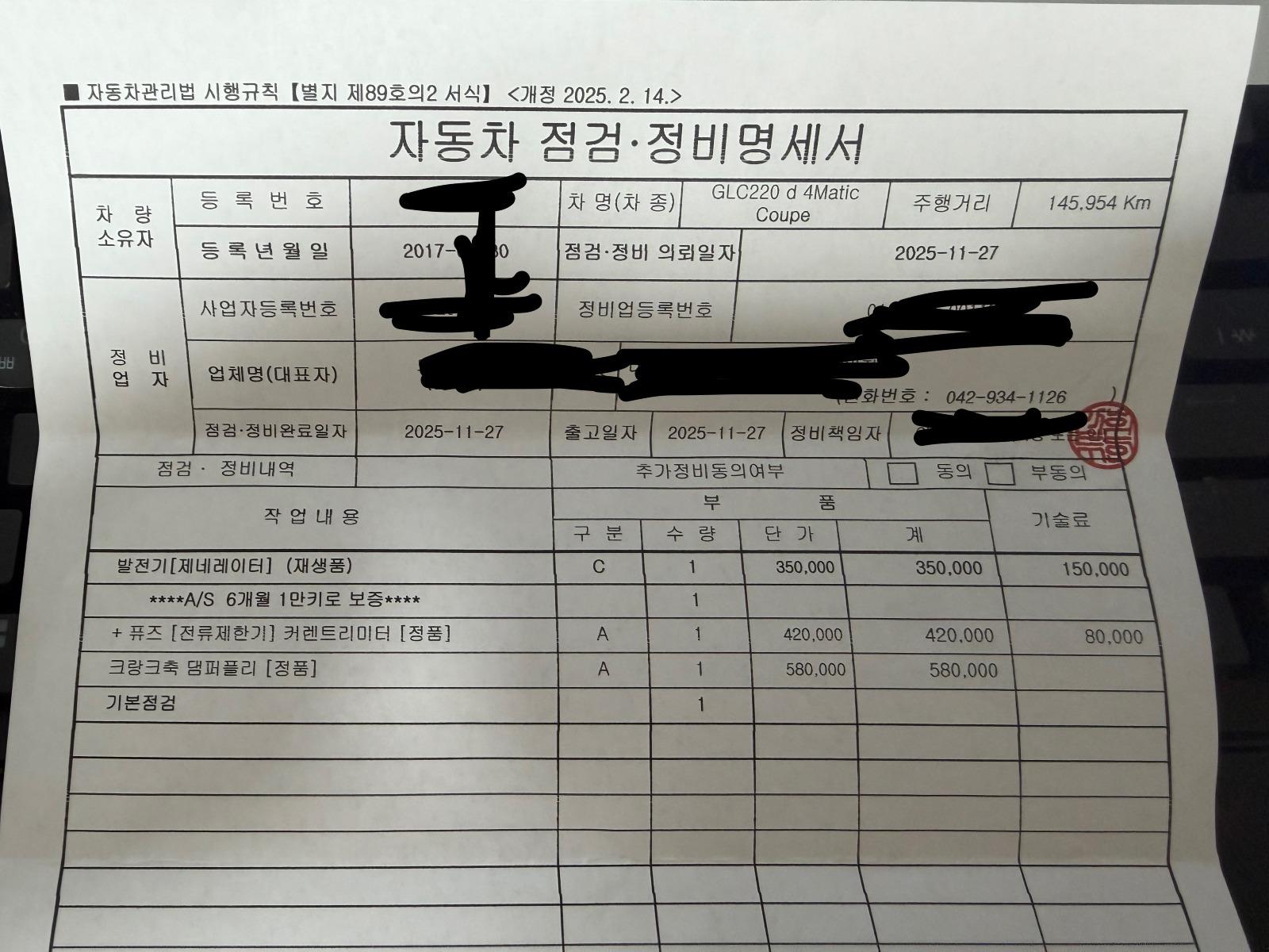 1. 발전기가 고장나서 정비소 가격알아보던중 한군데에서 저렴한 금액대로 수리를 해준다고 했습니다.