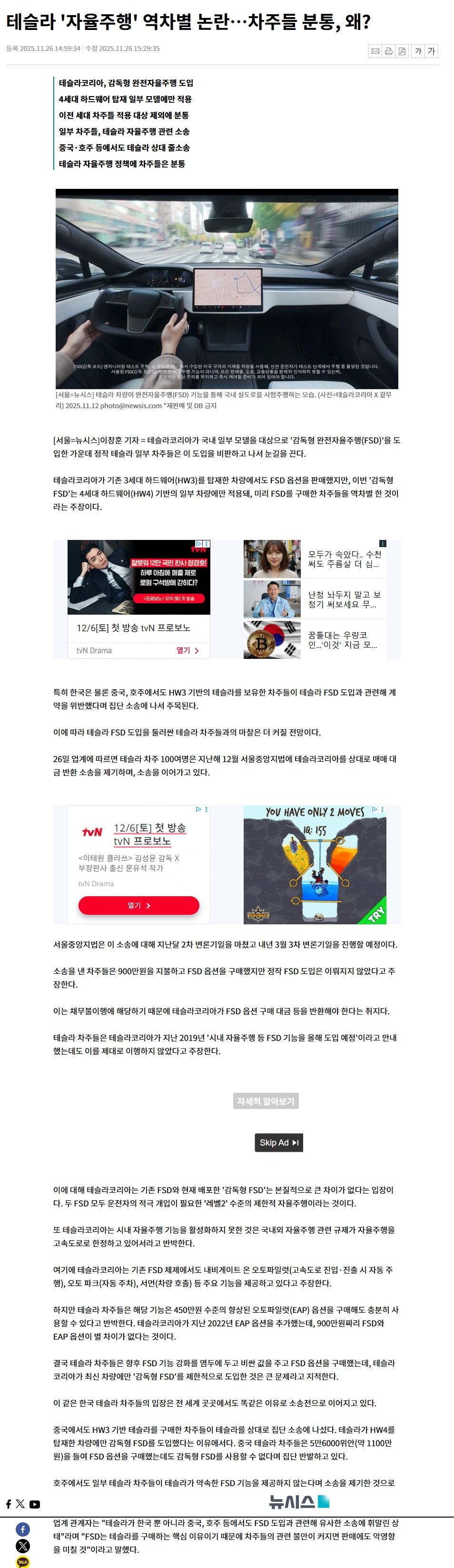 테슬라 '자율주행' 역차별 논란…차주들 분통, 왜? (4) 이미지 25.12.01 18:40 추천 22 조회 8339 안데르숀 작성글보기 신고 댓글 www.newsis.com.jpeg" /> 추천 22 본 게시물을 뉴스 및 기타 매체에서 인용하실 때는 '보배드림' 출처 표기를 부탁드립니다 페북 트윗 밴드 카톡 카스 복사 스크랩 삭제 수정 신고 불법광고신고 목록