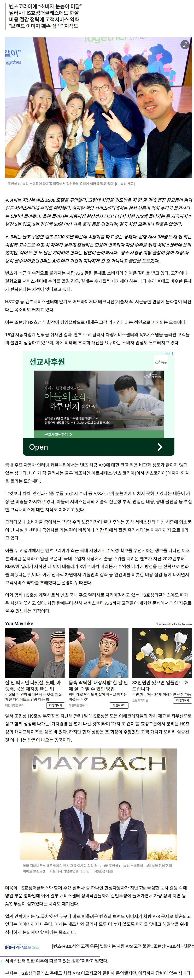 벤츠·HS효성의 고객 우롱] 빗발치는 차량 A/S 고객 불만…조현상 HS효성 부회장의 가치경영은 어디에? (2) 이미지 25.12.16 11:17 추천 20 조회 1599 안데르숀 작성글보기 신고 댓글 www.financialpost.co.kr.jpeg" /> 추천 20 본 게시물을 뉴스 및 기타 매체에서 인용하실 때는 '보배드림' 출처 표기를 부탁드립니다 페북 트윗 밴드 카톡 카스 복사 스크랩 삭제 수정 신고 불법광고신고 목록