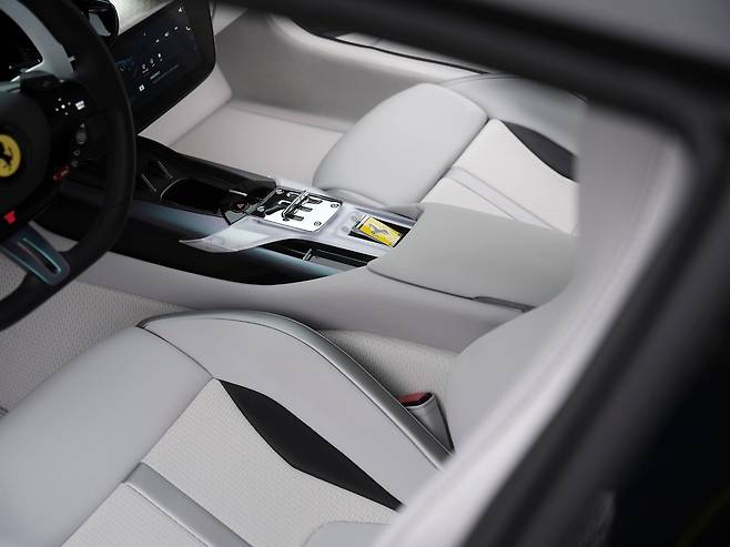 가장 먼저 시선을 사로잡는 요소는 외장 컬러다. 이 색상은 이번 프로젝트만을 위해 새롭게 개발된 것으로, 페라리 역사상 유례없는 독자적인 색이다. 명칭은 ‘윤슬(Yoonseul)’로, 물 위에 비친 햇빛이나 달빛이 반짝이는 모습을 뜻하는 한국어에서 따왔다.