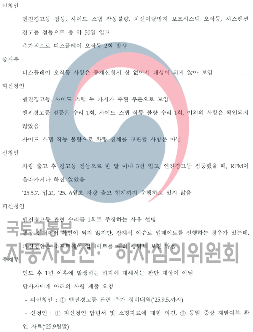 - 중재심리 취하 조건하에, 차량 환불 진행 가능.