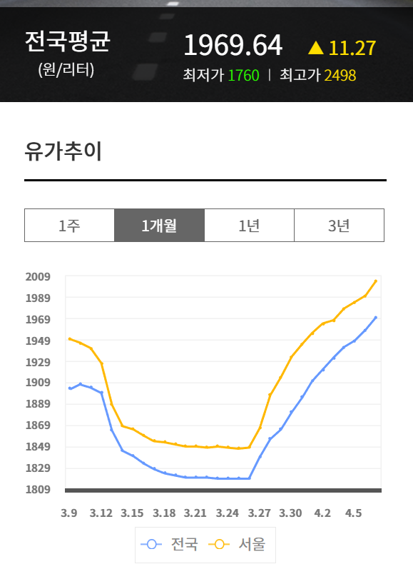 고급유 드디어 2200원 돌파 (13) 이미지 26.04.07 21:35 추천 16 조회 3184 수정 26.04.07 21:37 레인28 작성글보기 신고 댓글 서울은 2000원 돌파 고급유는 2200원 돌파 ㅠㅠ 일반 휘발유랑 혼유 한번 해봤습니다 8:2 3만원에 2칸♡ 옥탄가인지 옥탑방인지 뭐 잘 모르겠지만 큰 차이는 없는 것 같네요 추천 16 본 게시물을 뉴스 및 기타 매체에서 인용하실 때는 '보배드림' 출처 표기를 부탁드립니다 페북 트윗 밴드 카톡 카스 복사 스크랩 삭제 수정 신고 불법광고신고 목록