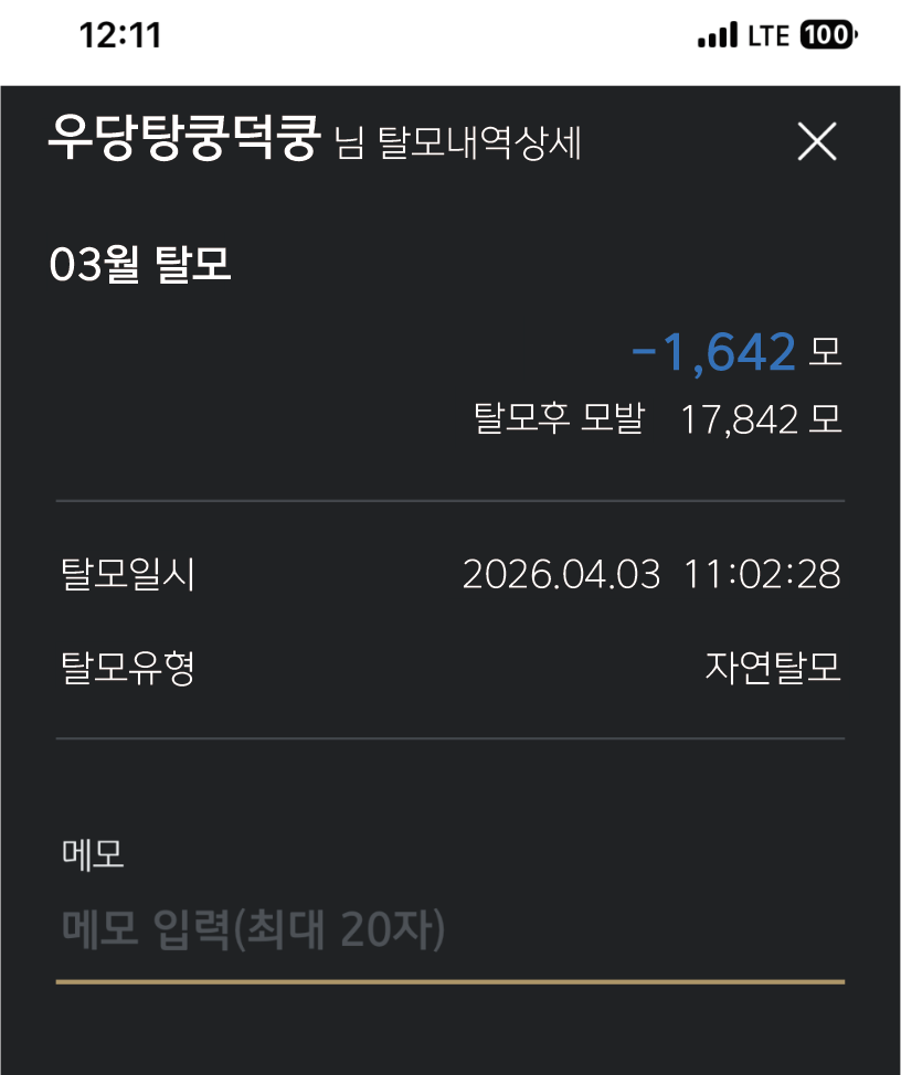 우당탕쿵덕쿵 으르신 탈모 인증 유출 (8) 이미지 26.04.03 15:46 추천 1 조회 328 쫀득한찹쌀방댕이 작성글보기 신고 댓글 추천 1 본 게시물을 뉴스 및 기타 매체에서 인용하실 때는 '보배드림' 출처 표기를 부탁드립니다 페북 트윗 밴드 카톡 카스 복사 스크랩 삭제 수정 신고 불법광고신고 목록