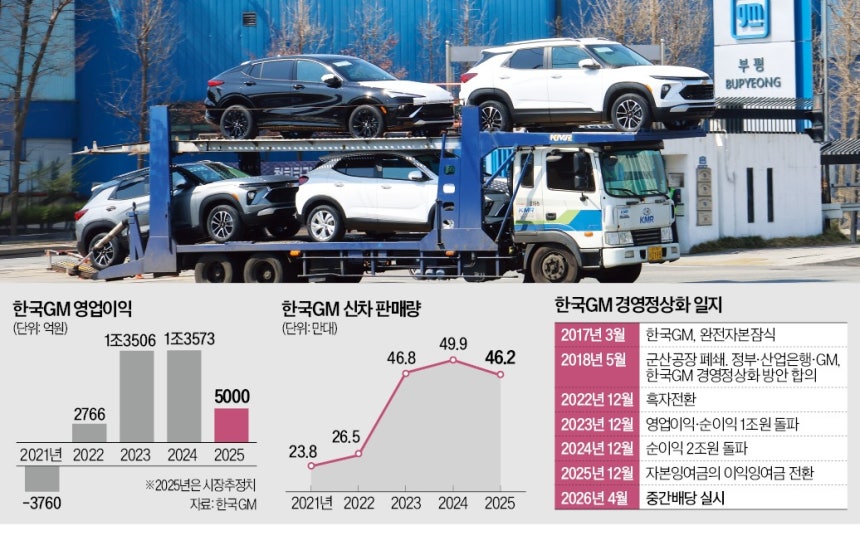 성과는 수치로 나타났다. 한국GM은 2022년 흑자 전환에 성공한 뒤 2023년과 2024년 잇따라 1조원대 영업이익을 내며 수익성을 회복했다. 지난해에도 수천억원의 흑자 기조를 유지했을 것으로 추정된다. 과거에는 공적자금을 넣어도 살아날지 알 수 없는 회사였지만, 지금은 주주에게 이익을 돌려줄 수 있는 회사가 된 것이다.