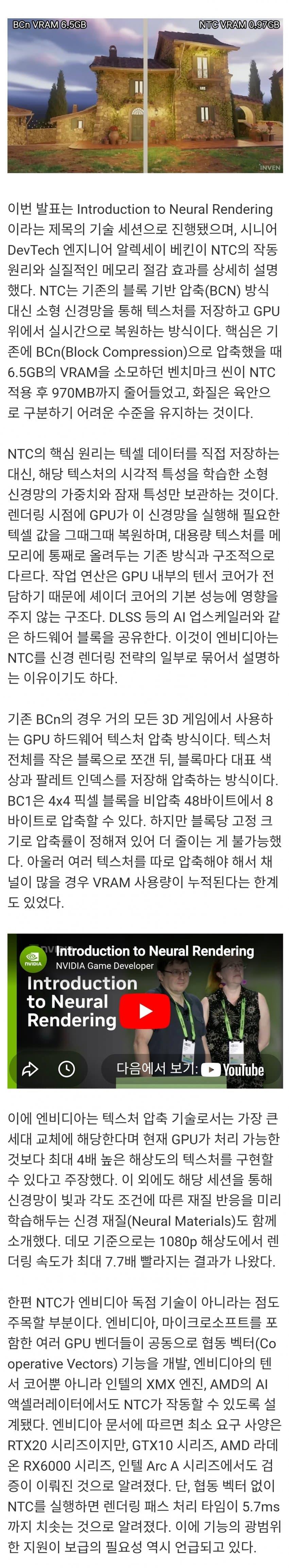 NTC 기술은 "화질은 그대로 유지하면서 VRAM 다이어트를 시켜주는 마법"입니다.
