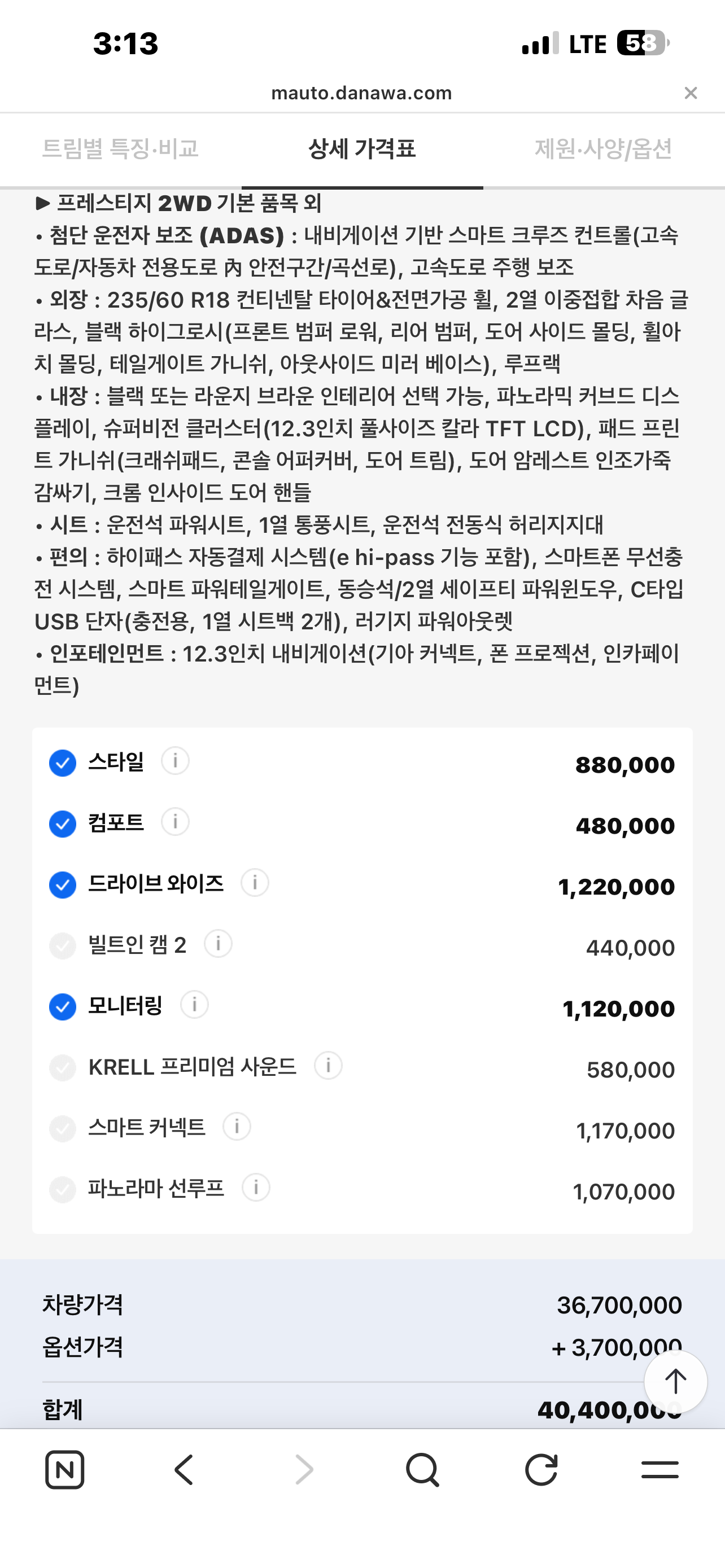 이미 가격 비슷 (1) 이미지 휴대전화 26.04.12 15:15 추천 15 조회 813 수정 26.04.12 15:20 giazadongcha 작성글보기 신고 댓글 스포티지 이륜 하브 vs 콜레오스 이륜 하브 서로 비슷한 옵션. 단, 콜레오스 깡통 하이패스 없음 스포티지는 내연기관 모델 판매량 많음. 콜레오스는 하이브리드 모델 판매량 많음. 추천 15 본 게시물을 뉴스 및 기타 매체에서 인용하실 때는 '보배드림' 출처 표기를 부탁드립니다 페북 트윗 밴드 카톡 카스 복사 스크랩 삭제 수정 신고 불법광고신고 목록