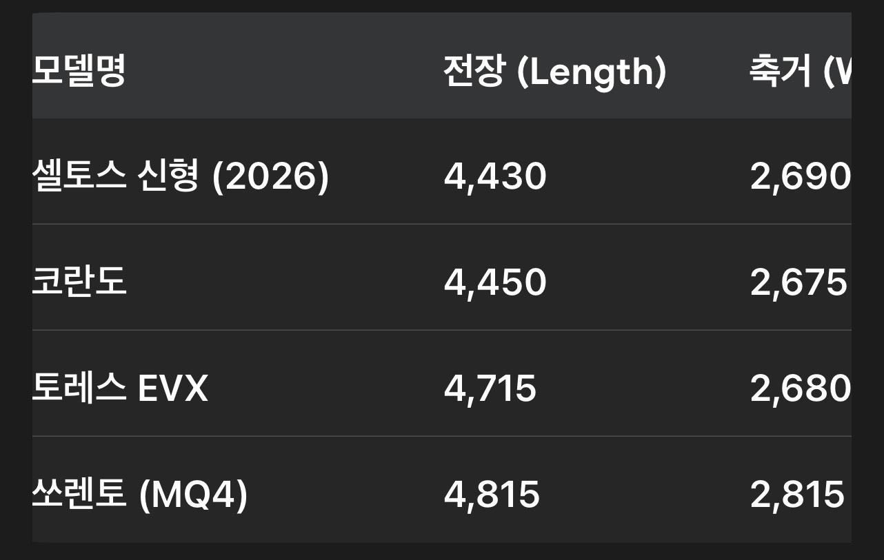 토레스와 액티언은 코란도 AIR (1) 이미지 휴대전화 26.04.12 15:32 추천 0 조회 475 수정 26.04.12 15:33 giazadongcha 작성글보기 신고 댓글 코란도를 그냥 셀토스 가격에 팔지... 앞뒤 램프와 범퍼만 바꾸어서. 그럼 셀토스의 경쟁차로 월 200대는 팔릴텐데. 추천 0 본 게시물을 뉴스 및 기타 매체에서 인용하실 때는 '보배드림' 출처 표기를 부탁드립니다 페북 트윗 밴드 카톡 카스 복사 스크랩 삭제 수정 신고 불법광고신고 목록