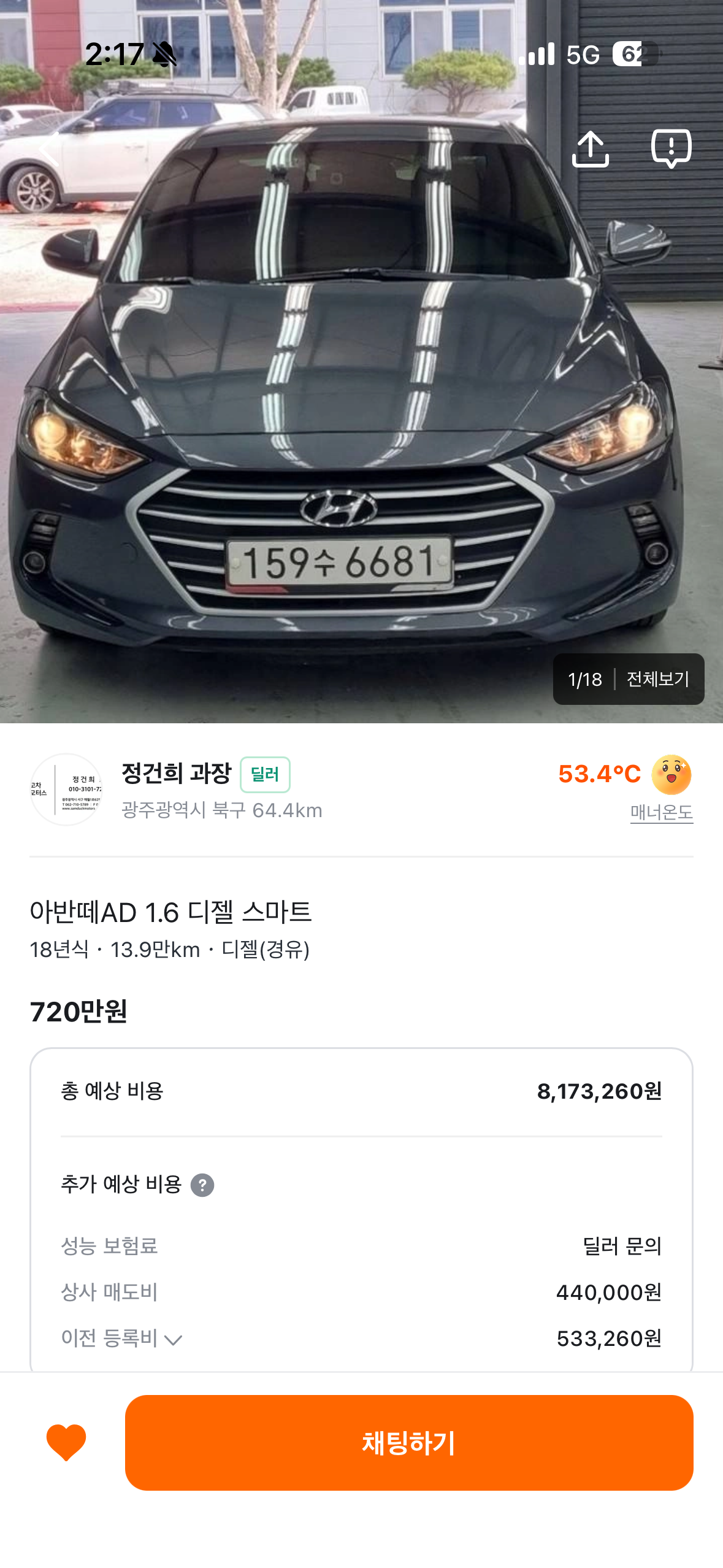 1. 아반떼ad 1.6디젤 스마트(18년식)