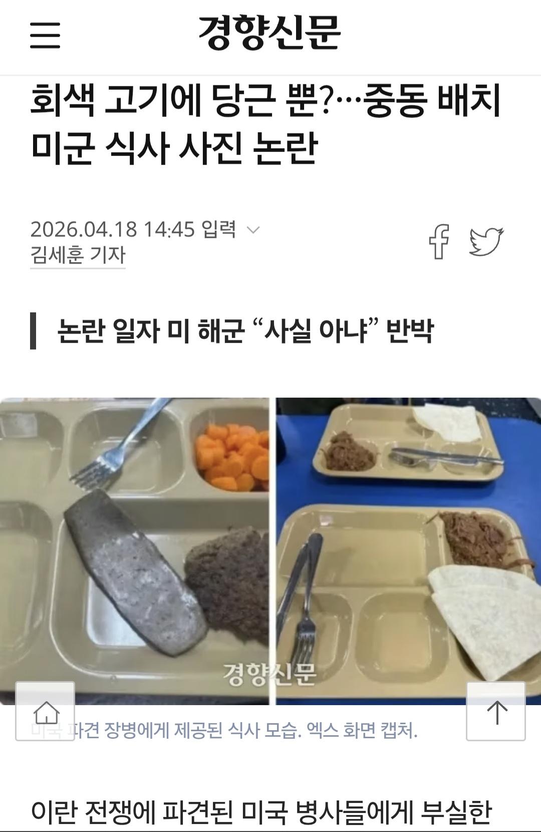 일본에 있다가 급하게 호르무즈로 파견된 미군함 승조원들이 부실급식 사진을 가족에게 보낸게 퍼져서 일파 만파로 논란이네요