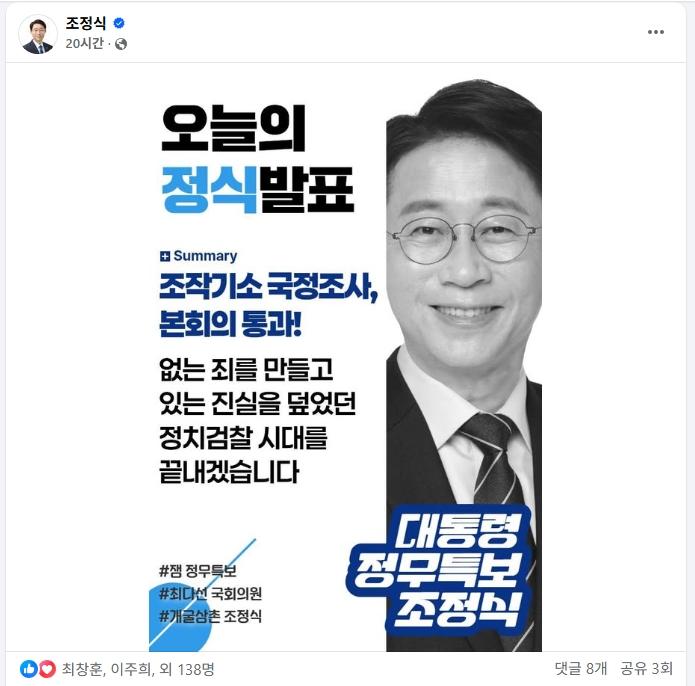 조정식 대통령 정무특보의 역할(10) - 조작기소 국정조사 본회의 통과 이미지 26.03.23 17:16 추천 4 조회 69 수정 26.03.23 17:17 승표삼촌 작성글보기 신고 댓글 조작기소 국정조사 본회의 통과! 추천 4 반대1 본 게시물을 뉴스 및 기타 매체에서 인용하실 때는 '보배드림' 출처 표기를 부탁드립니다 페북 트윗 밴드 카톡 카스 복사 스크랩 삭제 수정 신고 불법광고신고 목록