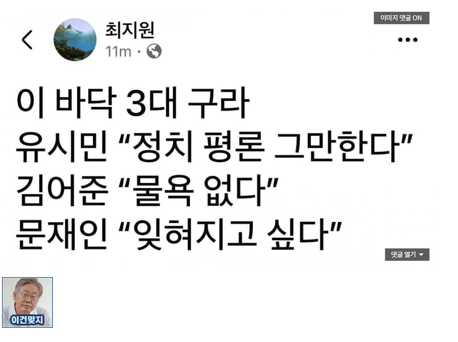 ㅋㅋㅋ ㅁㅌㅇ 3대 구라 (1) 이미지 26.03.24 13:23 추천 9 조회 114 바람의점심1 작성글보기 신고 댓글 개욱기냐 ㅋㅋ 추천 9 반대7 본 게시물을 뉴스 및 기타 매체에서 인용하실 때는 '보배드림' 출처 표기를 부탁드립니다 페북 트윗 밴드 카톡 카스 복사 스크랩 삭제 수정 신고 불법광고신고 목록