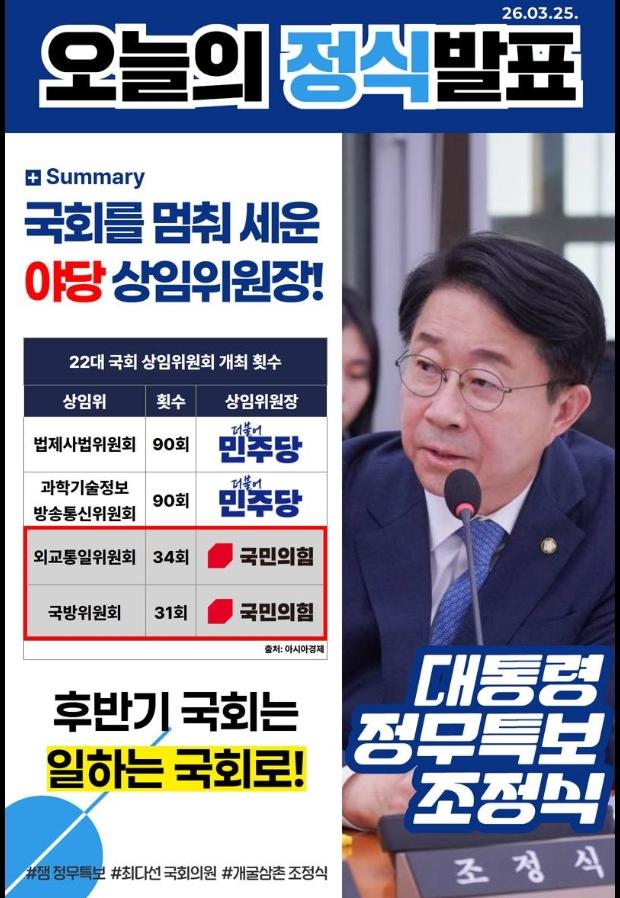 조정식 대통령 정무특보의 역할(13) - 후반기 국회는 일하는 국회로! 이미지 26.03.26 14:14 추천 1 조회 84 승표삼촌 작성글보기 신고 댓글 국회를 멈춰 세운 야당 상임위원장 - 후반기 국회는 일하는 국회로! 추천 1 반대1 본 게시물을 뉴스 및 기타 매체에서 인용하실 때는 '보배드림' 출처 표기를 부탁드립니다 페북 트윗 밴드 카톡 카스 복사 스크랩 삭제 수정 신고 불법광고신고 목록