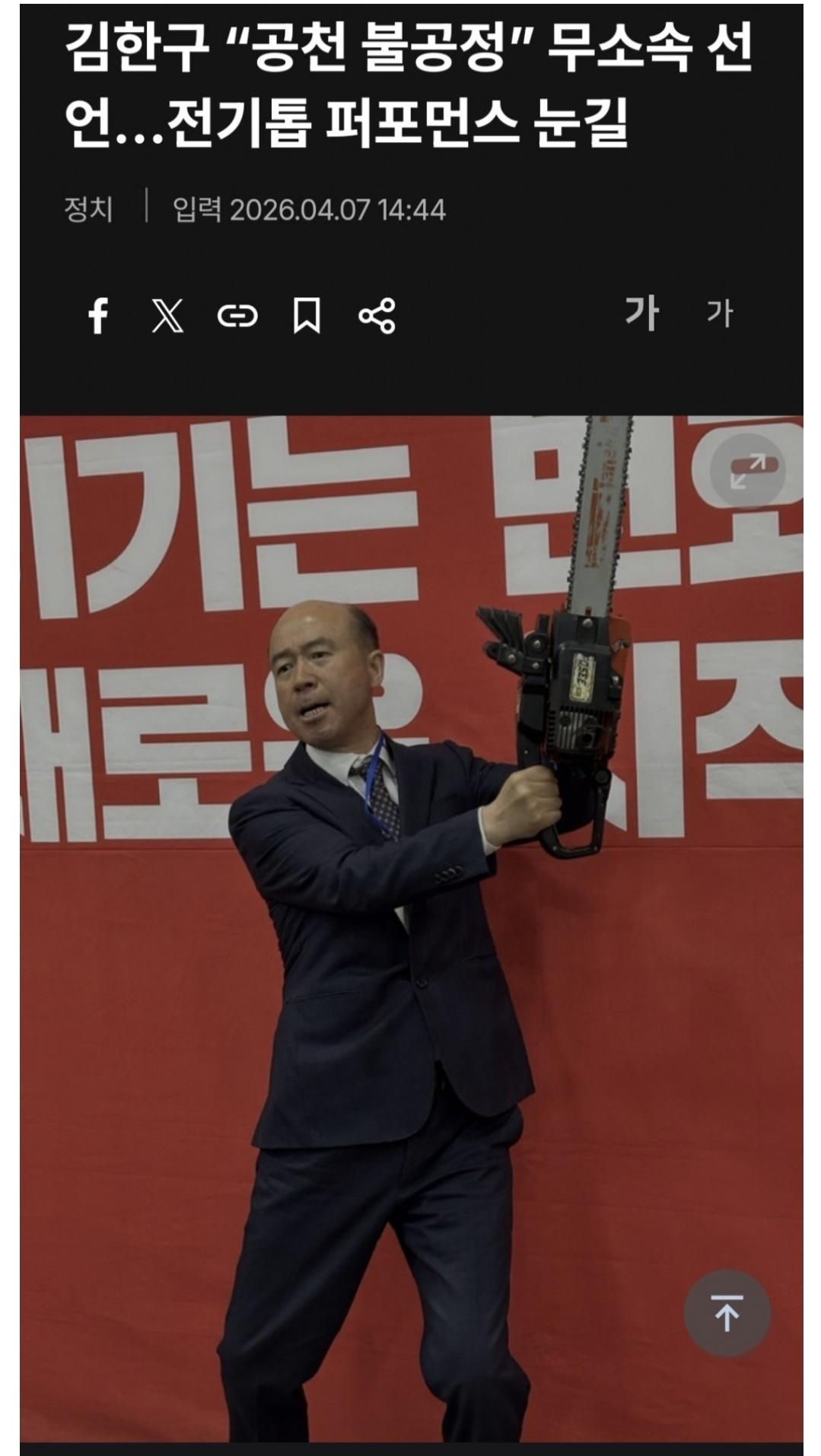 국민의힘 체인소 맨 (4) 이미지 휴대전화 26.04.08 16:35 추천 8 조회 769 0라바그0 작성글보기 신고 댓글 콩가루 ㅋㅋㅋ 추천 8 반대0 본 게시물을 뉴스 및 기타 매체에서 인용하실 때는 '보배드림' 출처 표기를 부탁드립니다 페북 트윗 밴드 카톡 카스 복사 스크랩 삭제 수정 신고 불법광고신고 목록