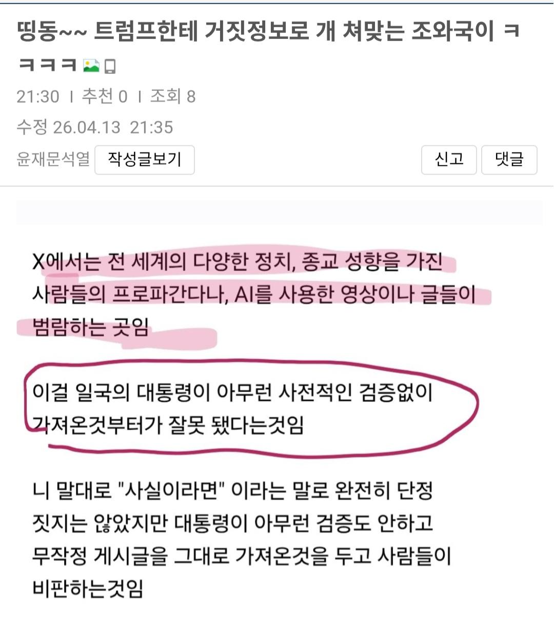 이재명 X 글 관련 팩트 체크하다 쳐맞으시더니