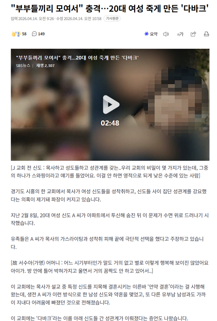 20대 여성 죽게 만든 사이비개독 이미지 26.04.14 11:57 추천 3 조회 96 월계극동66세쪽빠리 작성글보기 신고 댓글 대한민국에서 척결 일순위 대상 친일파와 사이비개독 @@ 추천 3 반대0 본 게시물을 뉴스 및 기타 매체에서 인용하실 때는 '보배드림' 출처 표기를 부탁드립니다 페북 트윗 밴드 카톡 카스 복사 스크랩 삭제 수정 신고 불법광고신고 목록