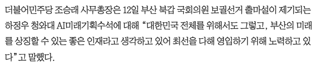 하정우 AI미래기획수석 부산 북갑 보궐선거 출마 관련 기사입니다.