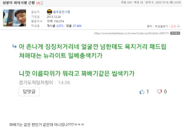그런데 넌 내 실명을 알자마자 온라인 게시판에 수차례 언급하고 있다는게 팩트인거고...