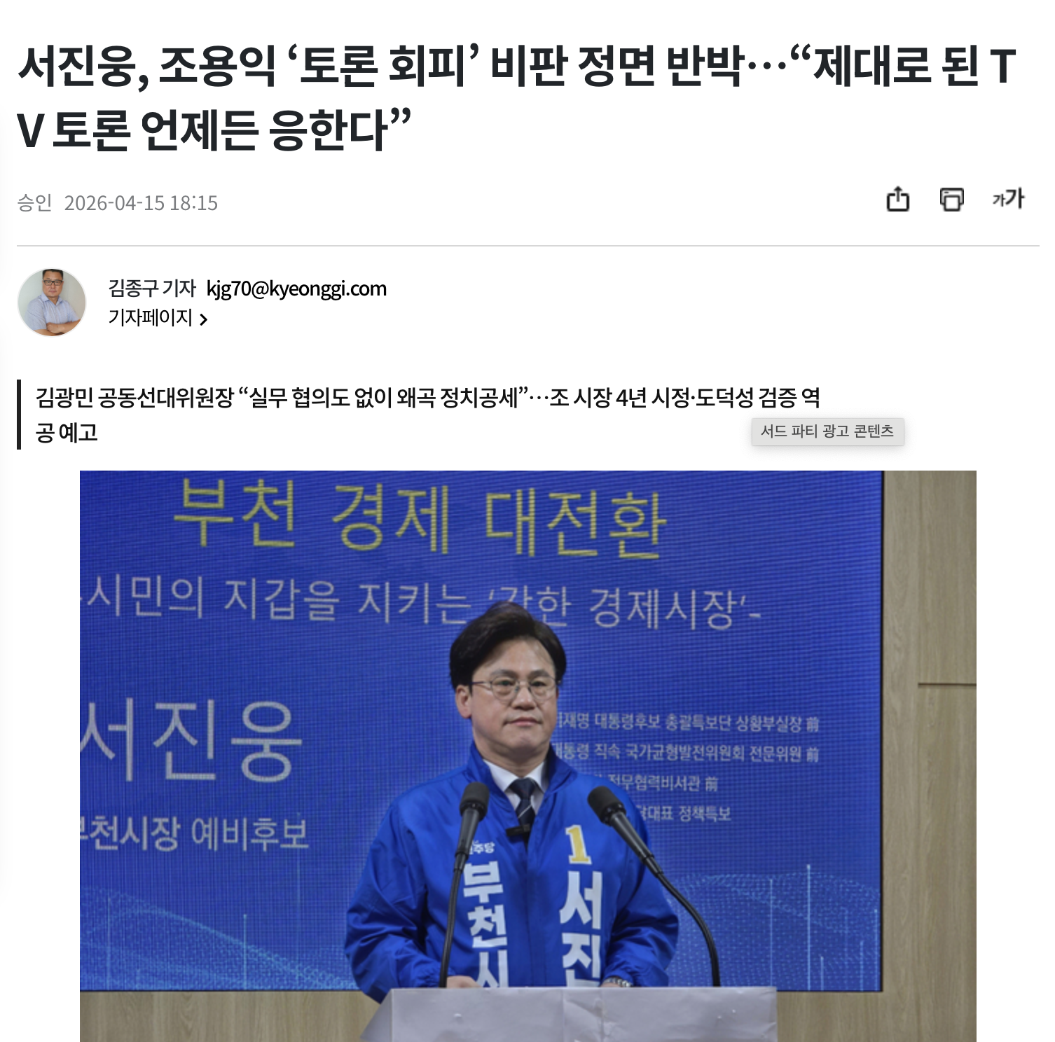 토론 피하는거 진짜.. 이미지 26.04.15 19:00 추천 0 조회 121 vvkvvkvkvv 작성글보기 신고 댓글 토론 회피하지마라킹직히 이거보니까 서진웅이 훨 낫드만https://www.kyeonggi.com/article/20260415580537 추천 0 반대1 본 게시물을 뉴스 및 기타 매체에서 인용하실 때는 '보배드림' 출처 표기를 부탁드립니다 페북 트윗 밴드 카톡 카스 복사 스크랩 삭제 수정 신고 불법광고신고 목록