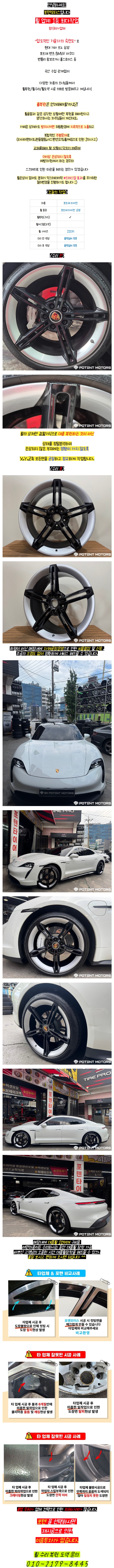 [포텐타이어] 포르쉐 타이칸 순정 21인치 휠 수리복원 #장착 이미지 26.03.12 10:40 추천 0 조회 18 포텐휠타이어 작성글보기 신고 댓글 추천 0 본 게시물을 뉴스 및 기타 매체에서 인용하실 때는 '보배드림' 출처 표기를 부탁드립니다 페북 트윗 밴드 카톡 카스 복사 스크랩 삭제 수정 신고 불법광고신고 목록